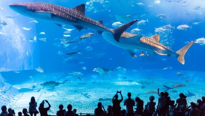 오키나와 여행에서 빠질 수 없는 대표 명소인 츄라우미 수족관은 세계 최대급 규모의 대형 수조와 고래상어, 가오리 등 희귀 해양 생물을 가까이서 볼 수 있는 곳입니다. 수족관 근처에 위치한 에메랄드 비치는 투명한 바다와 하얀 모래, 푸른 하늘이 어우러지는 포토 스팟으로 유명하며, 하늘과 바다를 배경으로 한 감성 사진이 SNS에서 자주 보입니다.